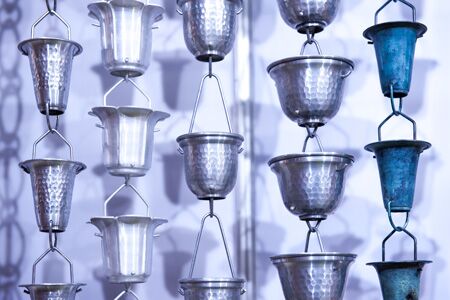 Rain chains are a beautiful alternative for the traditional downspouts. Rain chains allow water to glide visibly down chains or varies style of cups from the roof to the ground. Rain chains transform a typical downspout into a pleasing water feature. Not only is it satisfying to see but a treat to listen to.